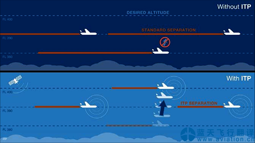 ITP is an advanced ADS-B In application that allows ITP-equipped aircraft to fly more often at optimal or less turbulent flight levels during oceanic flights.