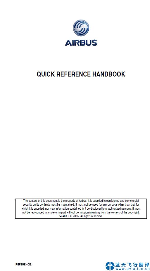 北京藍天飛行翻譯公司完成航空公司2017年7月19日版本空客A320機組使用手冊翻譯任務(wù) A318/A319/A320/A321 FLIGHT CREW OPERATING MANUAL ISSUE DATE: 19 JUL 17 This is the FLIGHT CREW OPERATING MANUAL major event publication at issue date 19 JUL 17 for the A318/A319/A320/A321 and replacing last issue dated 07 JUN 17 ![]() A320機組使用手冊 FLIGHT CREW OPERATING MANUAL 北京藍天飛行翻譯公司完成航空公司2017年6月7日版本空客A320快速檢查單翻譯任務(wù) A318/A319/A320/A321 QUICK REFERENCE HANDBOOK Issue date: 07 JUN 17 This is the QUICK REFERENCE HANDBOOK at issue date 07 JUN 17 for the A318/A319/A320/A321 and replacing last issue dated 17 MAY 17 ![]() A320快速檢查單 QUICK REFERENCE HANDBOOK |