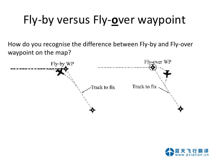 To inform flight crews of an erroneous distance to waypoint anomaly and subsequent fly-over instead of fly-by waypoint in the route. 出自757FCOM fly-over必須得經(jīng)過航路點(diǎn)上空,可以翻為“飛越” fly-by不經(jīng)過航路點(diǎn)上空,可以翻為“從航路點(diǎn)旁飛過” ![]() Fly-by 與 Fly-over ![]() Fly-by versus Fly-over waypoint |