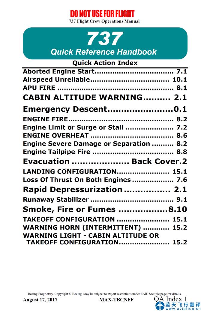 ![]() 737MAX快速檢查單 737MAX Quick Reference Handbook