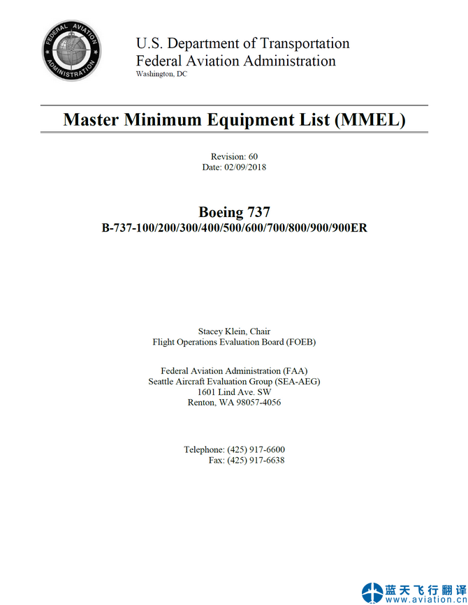 北京藍(lán)天飛行翻譯公司承接航空公司波音737經(jīng)典型和737NG放行偏離指南(DDG)及主最低設(shè)備清單(MMEL)翻譯任務(wù) Boeing 737 Classic and NG Dispatch Deviations Guide (DDG) and Boeing 737 Master Minimum Equipment List (MMEL) Translation ![]() 波音 737 Boeing 737 ![]() 737 主最低設(shè)備清單 737 Master Minimum Equipment List (MMEL) ![]() |