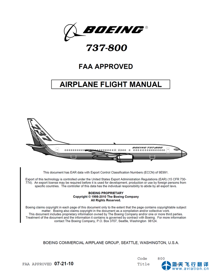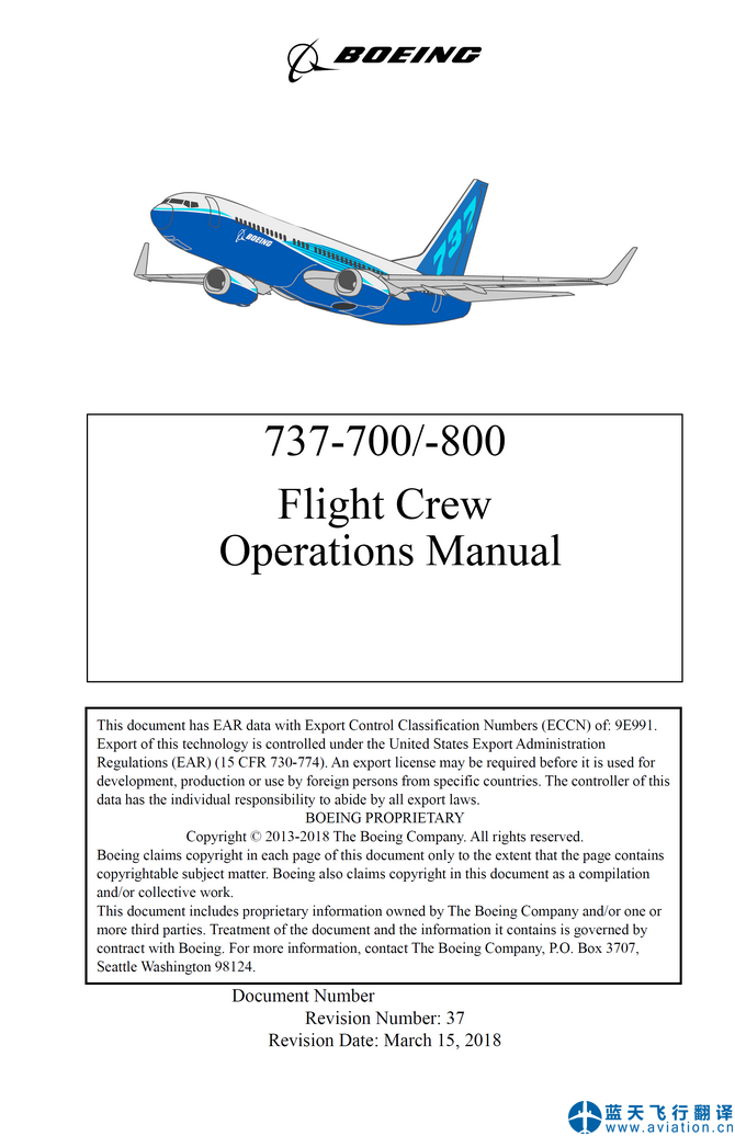 北京藍(lán)天飛行翻譯公司承接航空公司全套波音737-800飛行手冊翻譯任務(wù) 737-800 Flight Manuals Translation 此次翻譯的全套波音737-800飛行手冊包含有2018年3月15日(March 15, 2018)版本的737-800飛行機(jī)組使用手冊(Flight Crew Operations Manual),737-800快速檢查單(Quick Reference Handbook),737-800飛機(jī)飛行手冊(Airplane Flight Manual)和737 NG飛行機(jī)組訓(xùn)練手冊(Flight Crew Training Manual)。 ![]() ![]() 737 NG飛行機(jī)組訓(xùn)練手冊 737 NGFlight Crew Training Manual ![]() 737-800快速檢查單 737-800 Quick Reference Handbook ![]() 737-800飛機(jī)飛行手冊 737-800 Airplane Flight Manual |