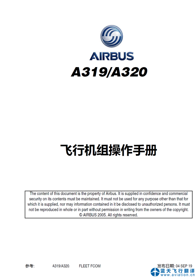 北京藍(lán)天飛行翻譯公司完成航空公司45架空客A320 FCOM、AFM和FCTM翻譯任務(wù) 04 SEP 19 A320 FLIGHT CREW OPERATING MANUAL, QUICK REFERENCE HANDBOOK and AIRPLANE FLIGHT MANUAL Translation