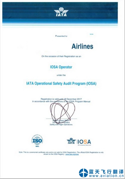 ![]() IOSA審計認證證書 |