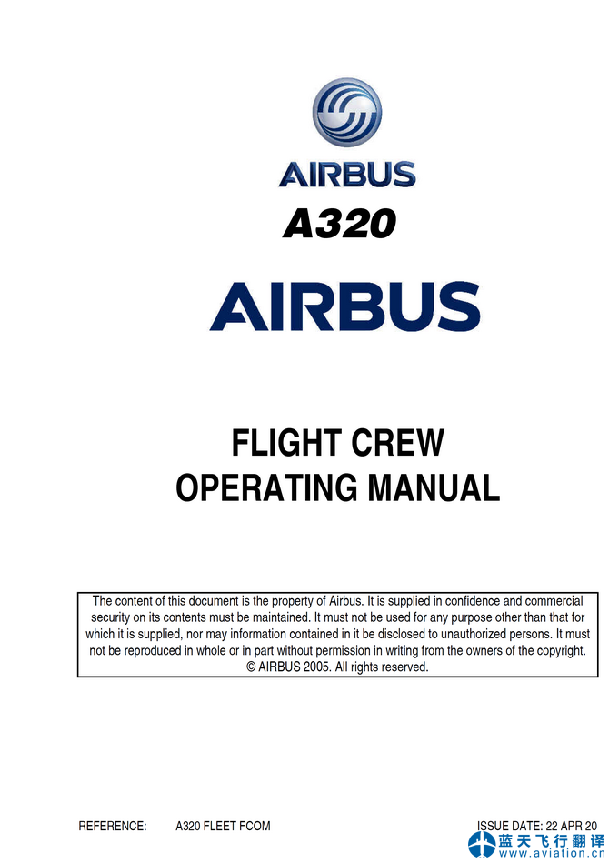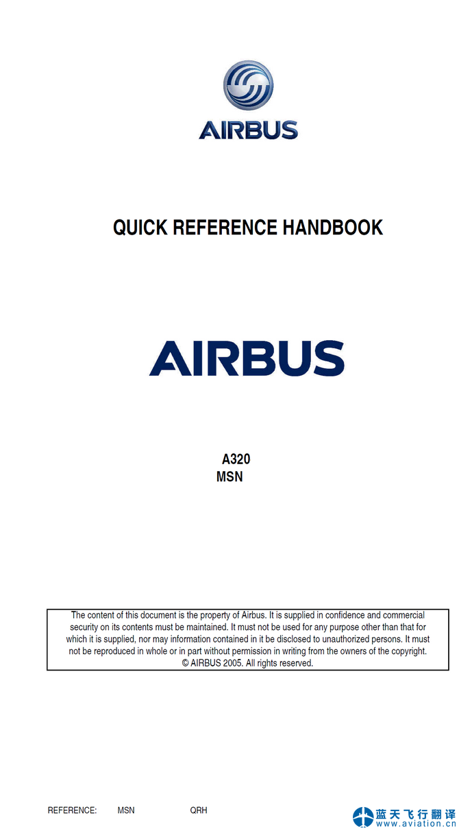 北京藍(lán)天飛行翻譯有限公司完成大型航空公司72架空客A320飛行機組操作手冊(FCOM FLIGHT CREW OPERATING MANUAL)、A320快速檢查單(QRH QUICK REFERENCE HANDBOOK)和A320飛機飛行手冊(AIRPLANE FLIGHT MANUAL)翻譯任務(wù) 22 APR 20 A320 FLIGHT CREW OPERATING MANUAL, QRH QUICK REFERENCE HANDBOOK and AIRPLANE FLIGHT MANUAL Translation