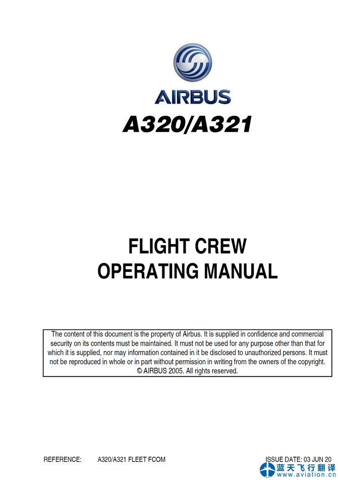 北京藍天飛行翻譯有限公司完成航空公司5架空客A320飛行機組操作手冊(FCOM FLIGHT CREW OPERATING MANUAL)、A320快速檢查單(QRH QUICK REFERENCE HANDBOOK)、A320飛機飛行手冊(AIRPLANE FLIGHT MANUAL)和A320飛行機組技術(shù)手冊(FLIGHT CREW TECHNIQUES MANUAL)翻譯任務(wù) 03 JUN 20 A320 FLIGHT CREW OPERATING MANUAL, QRH QUICK REFERENCE HANDBOOK, AIRPLANE FLIGHT MANUAL and FLIGHT CREW TECHNIQUES MANUAL Translation