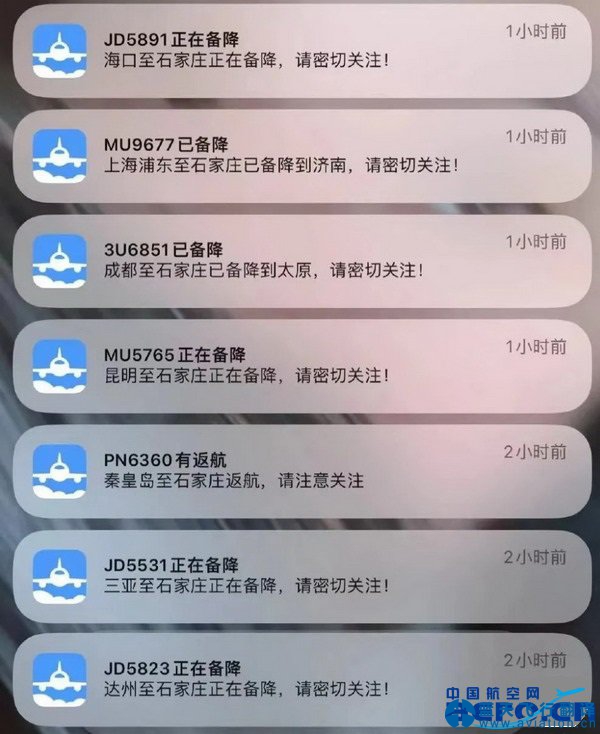 網(wǎng)傳石家莊機場多個航班返航或備降,機場:確有臨時空中管制,已恢復正常