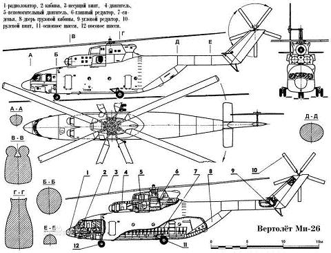 ![]() 米26直升機三視圖 米26直升機介紹 旋翼直徑:32.00m 尾槳直徑:7.61m 機長(旋翼和尾槳轉(zhuǎn)動):40.03m 機身長(尾槳除外):35.91m 機高(到旋翼槳轂頂部):8.15m 機高(尾槳旋轉(zhuǎn)):11.60m 水平尾翼翼展:6.02m 主輪距:7.17m 前主輪距:8.95m 米-26內(nèi)部尺寸 貨艙 長度(裝卸跳板放下)15.00m (不包括跳板) 12.00m |