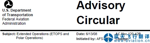 北京藍(lán)天飛行翻譯公司完成國(guó)有大型航空公司的延程運(yùn)行(ETOPS和極地運(yùn)行)咨詢通告翻譯任務(wù) Extended Operations (ETOPS and Polar Operations) Advisory Circular Translation
